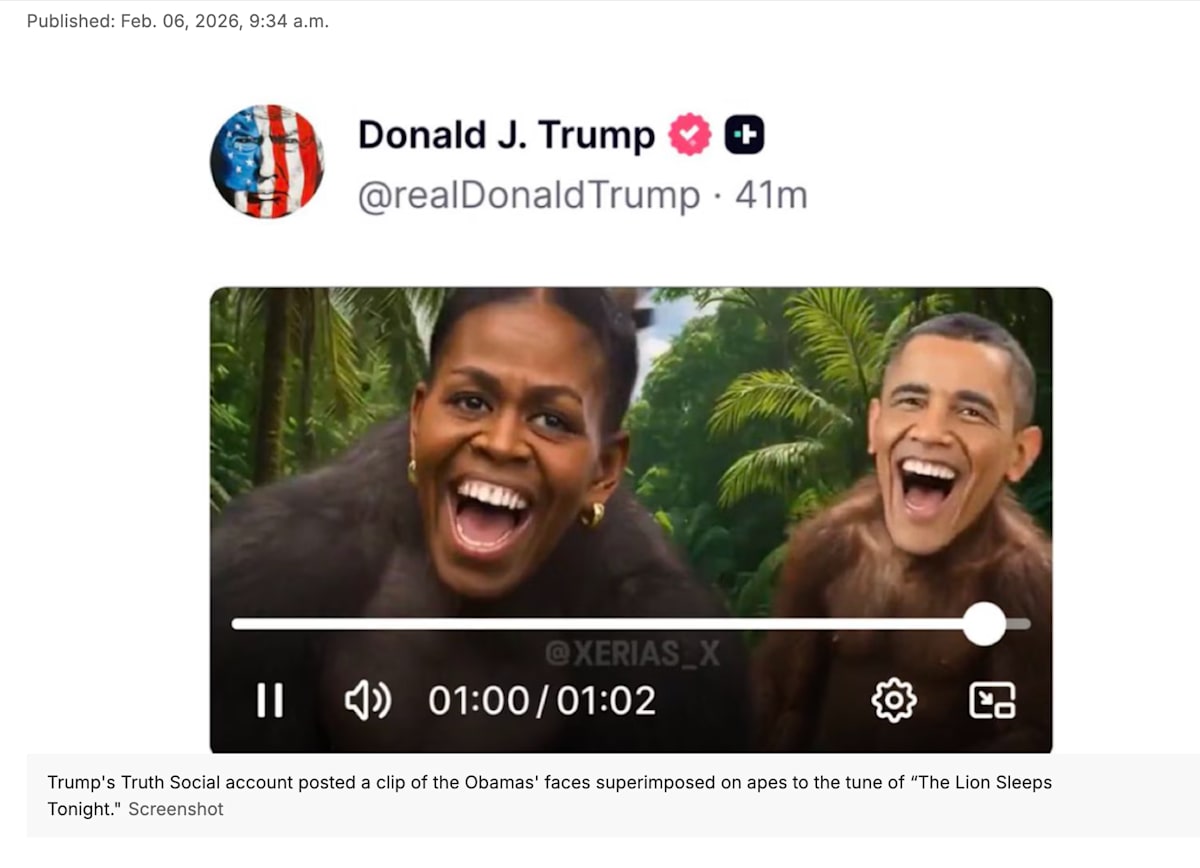 Just a bit of an update to the post from below .... that was posted on January 26, 2026. Today is February 6, 2026. Today, the President of the United States published a video containing the image below. That's all. Just let me say this again so there's no confusion ... the President of the United States of America published the image below today.